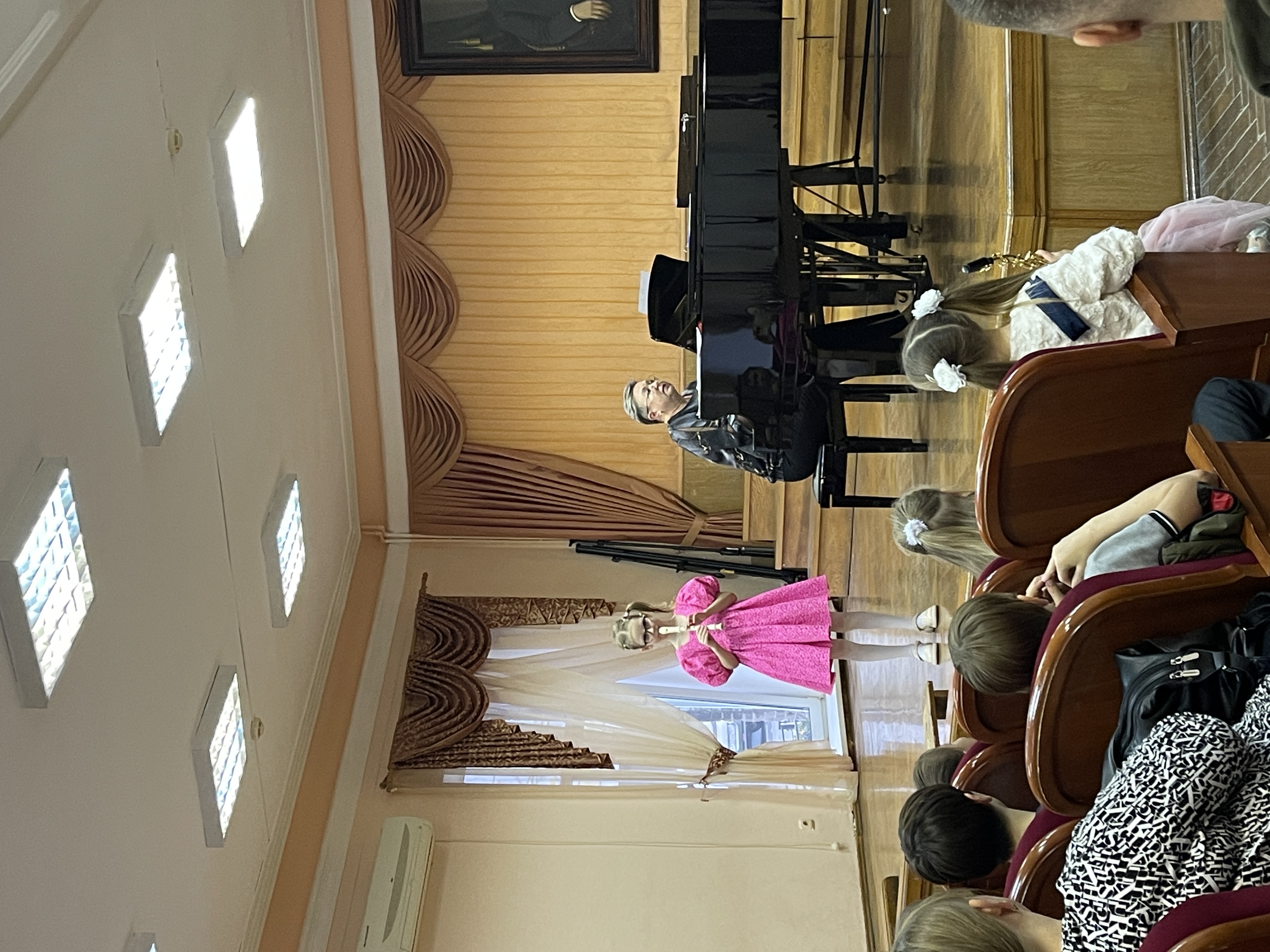 Ведущая концерта, Наталья Анатольевна Акентьева, познакомила зрителей с интересными фактами о духовых инструментах. В завершение мероприятия состоялась торжественная церемония посвящения в духовики, где юным музыкантам вручили почётные медали.